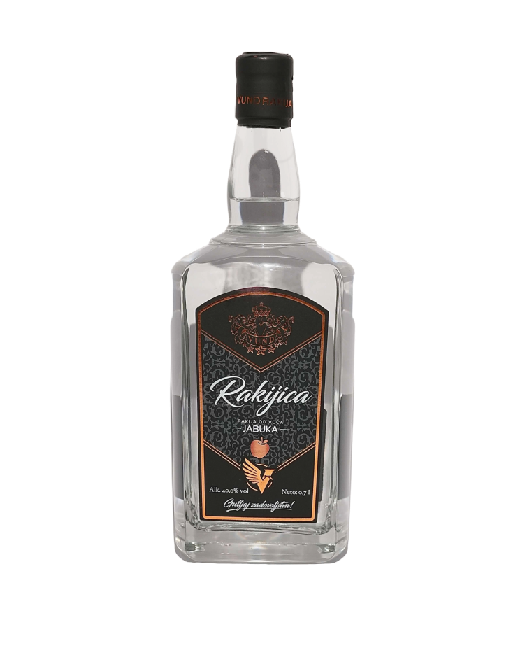 Rakijica Jabuka 40.0%vol je proizvedena isključivo alkoholnom fermentacijom i destilacijom mesnatog ploda voća Jabuke.Naše rakije se dobijaju dvostrukom destilacijom kako bi se izbalansirao i dobio čist proizvod vrhunskog kvaliteta.Svaka naša Rakijica dobija se od zdravih voćki kako bi se dobila rakija intenzivnog mirisa , da svaki gutljaj budi emocije i oduševljava slatkim,prepoznatljivim ukusom aromatičnih plodova.